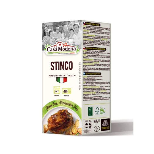 Golonka gotowana Stinco od włoskiej marki CASA MODENA zyskała popularność dzięki swojej delikatności i aromatycznym przyprawom. Ta wędlina sprawdzi się doskonale zarówno na zimno, jak i w wersji podgrzanej – jako wykwintne danie obiadowe. Stanowi idealne połączenie kulinarnej tradycji i nowoczesności. Przypadnie do gustu miłośnikom tradycyjnych włoskich smaków.