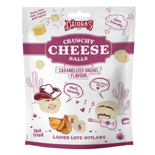 Chrupiące suszone kulki z sera półtwardego, podpuszczkowego o smaku karmelizowanej cebulki