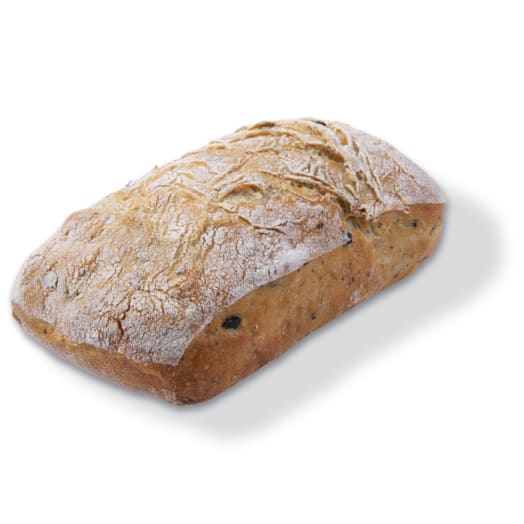 Ciabatta z oliwkami to lekka przekąska idealna o każdej porze dnia. Dodatek zakwasu pszennego oraz wypiek w piecu o kamiennym podłożu sprawiają, że to pieczywo ma wilgotny, aromatyczny miękisz oraz pozostaje świeże przez długi czas. Produkt posiada tzw. „czystą etykietę”, co oznacza, że jest wolny od substancji konserwujących, emulgatorów, stabilizatorów, zagęstników, aromatów oraz środków spulchniających.
