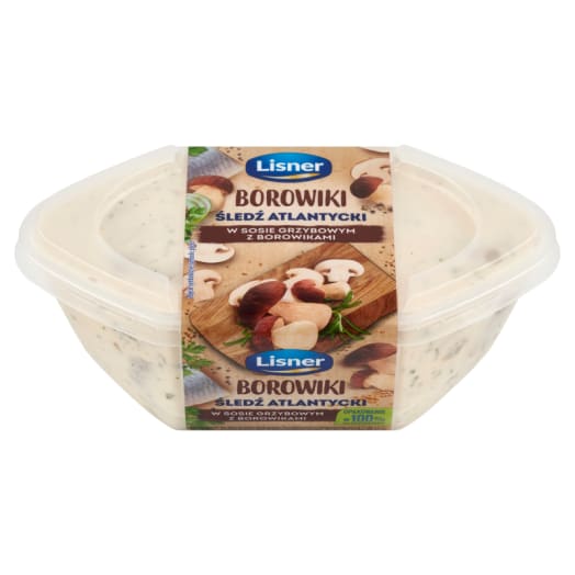 Lisner filety śledziowe w sosie grzybowym z borowikami to doskonałe połączenie intensywnych smaków i zapachów. Śledź atlantycki w kawałkach pysznie komponuje się z kremowym sosem na bazie śmietany. Całość tworzy jedyną w swoim rodzaju przekąskę.