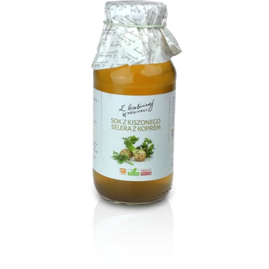 Sok z kiszonego selera z koprem sporządzony ze świeżego selera z dodatkiem naturalnych przypraw, w szklanej butelce hermetycznie zamkniętej utrwalony w procesie pasteryzacji. Wyprodukowany na bazie własnego ujęcia wody.